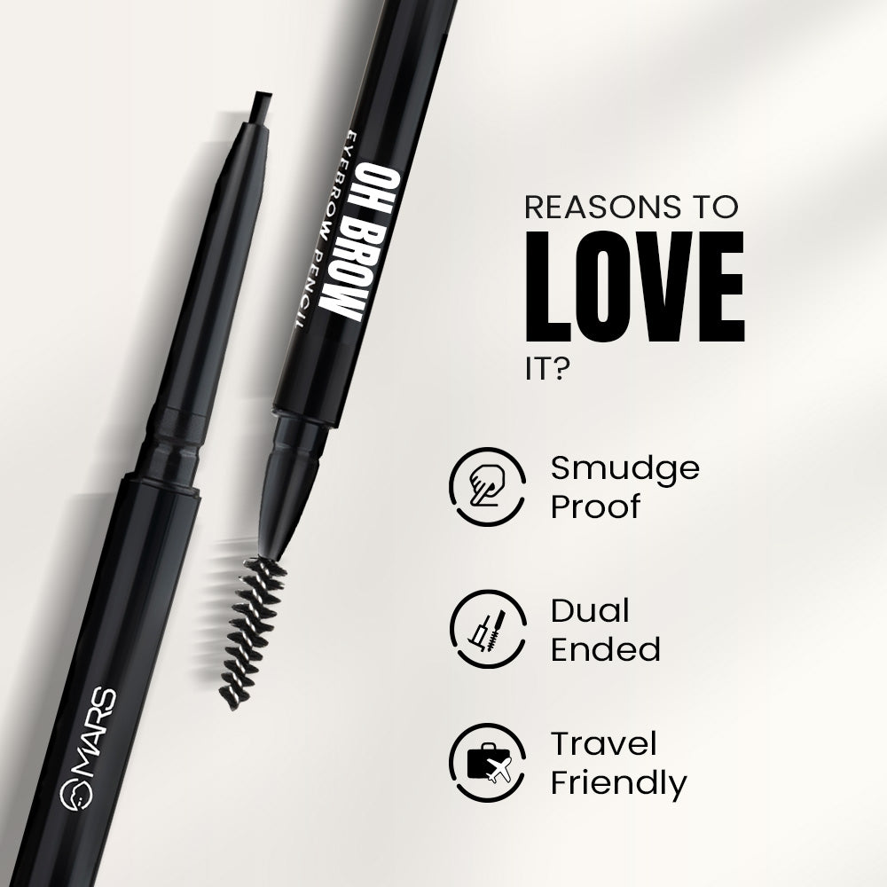 Get set brow! The MARS Oh Brow Eyebrow Pencil comes in a dual ended design with a fine tip pencil on one side to give you the most precise strokes and a spoolie brush on the other to comb and define the brows for a flawless arch.