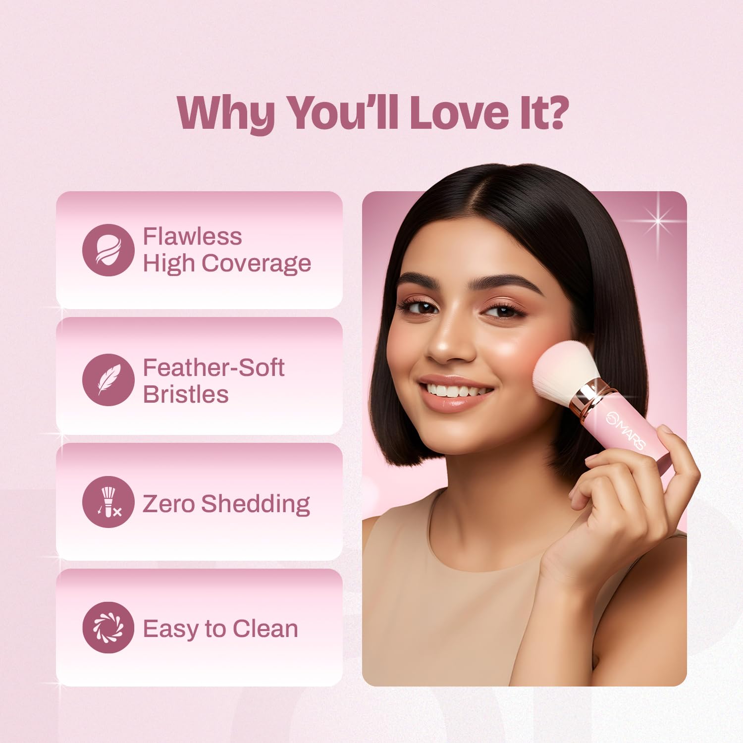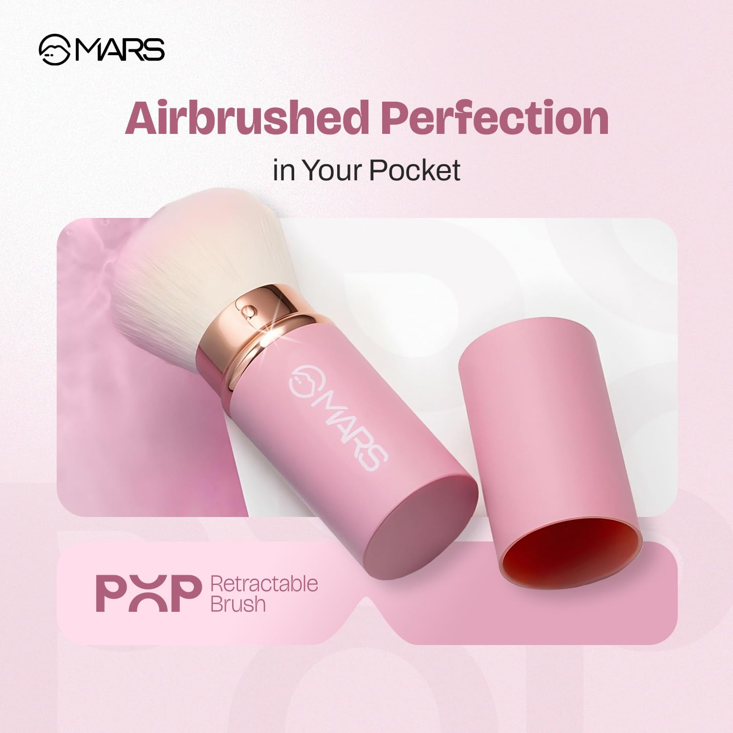 MARS Pop Retractable Brush | Airbrush Kabuki Finish | Flawless High Coverage | Ultra-Soft Bristles | Multi-Functionality | Travel-Friendly | Easy to Clean