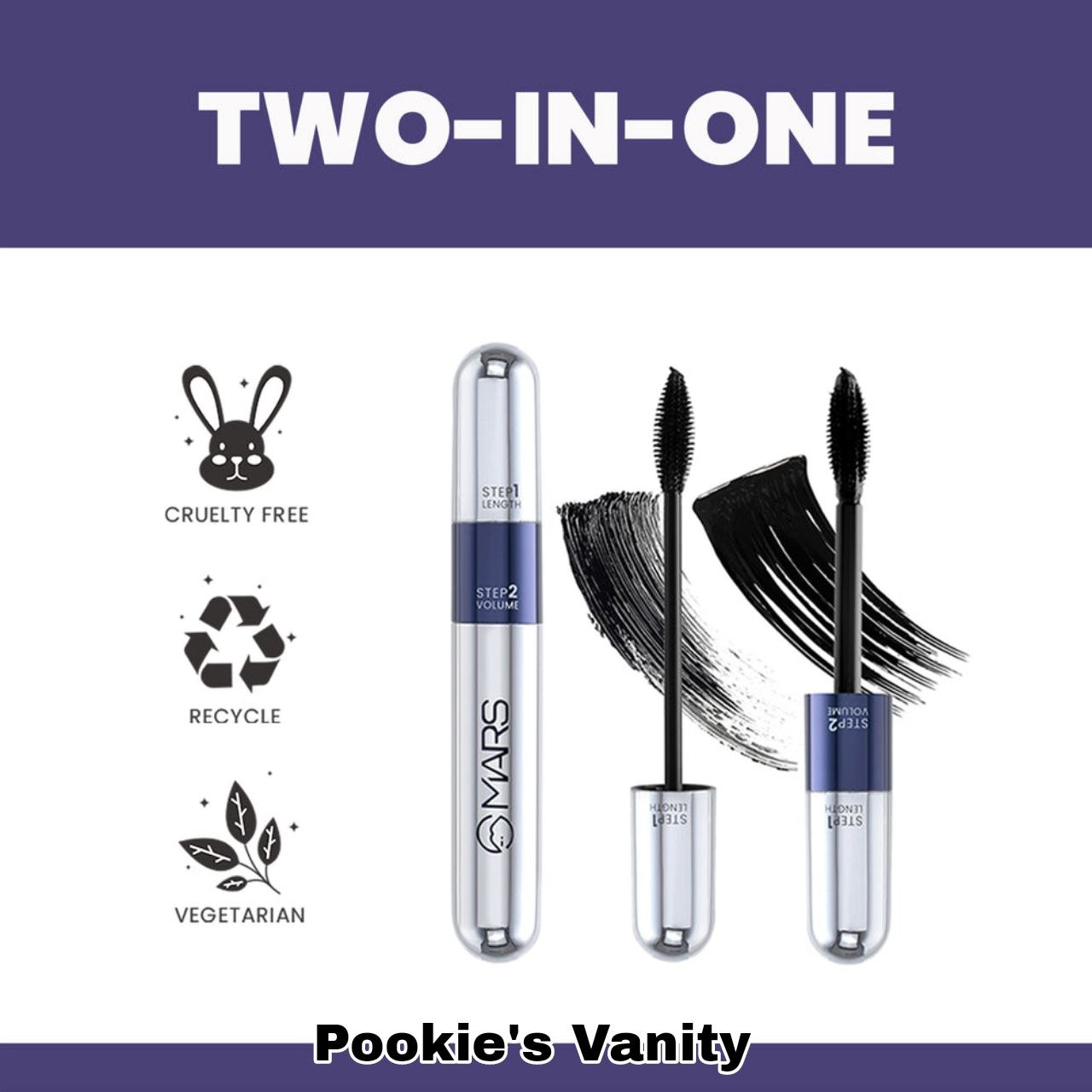 Why settle for less? With MARS Two-in-One Mascara- Double Trouble have the best of both worlds, get the desired length with one cap and volume from the other. Get thicker and dramatic lashes with one product.